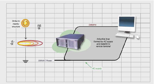 This occurs due to the dataline forming part of the inductive loop, which is formed by the line on the one side and the power cable on the other side.