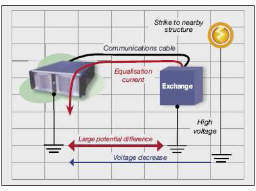 Equalisation occurs via the cables which in turn causes the damage to the equipment.