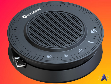 The R1M is a speakerphone from Accutone. Designed to work within the office environment. It has a superb echo-cancellation ability. Compatible with Microsoft Lync and other UC applications. Aside from USB connection, the R1M comes with a rechargeable battery, which supports 3.5mm connectivity for conferencing via smartphone or tablet.